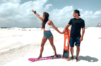滑板VS越野车,一起体验西澳最狂野冰激淋沙丘的乐趣看起来就像极地冰原,但实际上人们却要冒着酷热观赏这里的美景 因为雪白的地面上实际上都是洁白的沙土 四种方式让你尽情的享受白沙丘带来的乐趣: 搭乘山地越车、越野冲沙摩托,滑沙板冲沙,以及美美的拍上几张大片 -