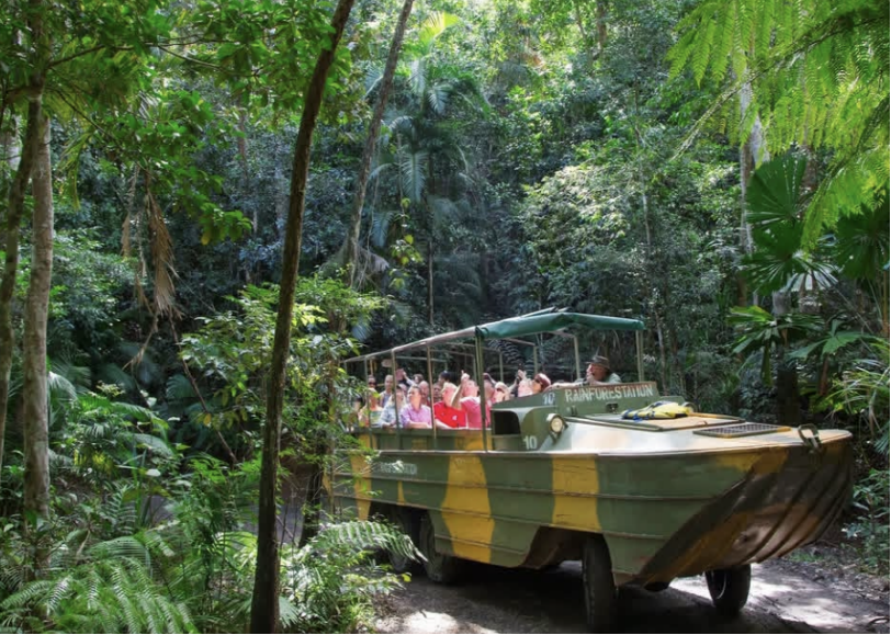 下午:乘坐水两栖战车穿越热带雨林,走进原住民园区,沉浸欣赏土著表演感受土著文化
