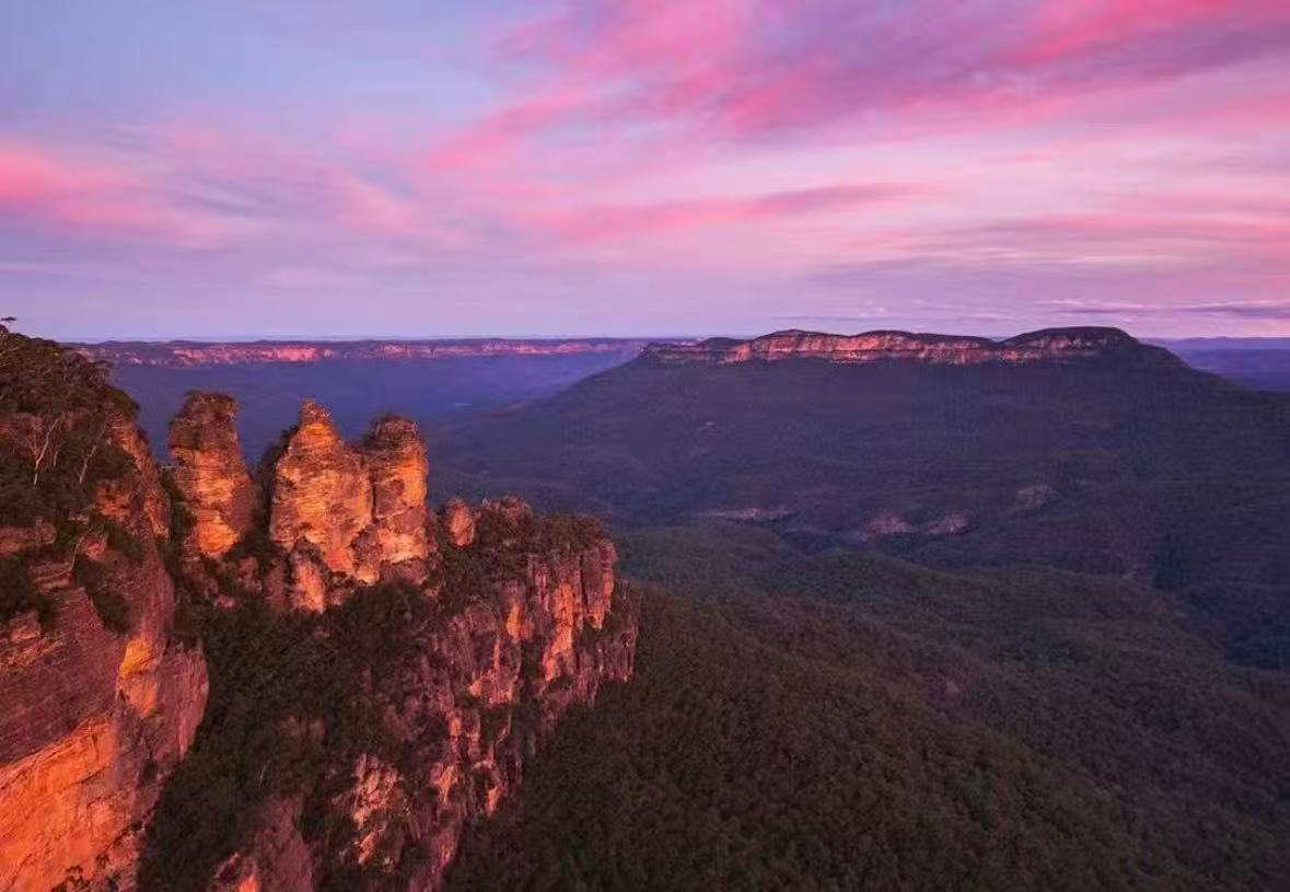 上午:在蓝山国家公园观景台远眺三姐妹峰的传奇