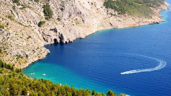 欧洲最美海岸线 驰骋马卡尔卡斯卡海滨马卡尔斯卡海滨是克罗地亚最美的海岸风景之一, 也是中达尔马提亚地区最富盛名的悬崖海岸, 一面紧贴巍峨高山 , 一面直入蔚蓝的亚得里亚海。 -