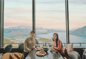 缆车直达皇冠之巅 “天空餐厅“午宴天空缆车餐厅被美国广播公司评为世界最佳景观餐厅, 这里是俯瞰整个皇后镇的最佳角度, 餐厅内的330个座位环形排列, 高低错落,手边是精美的食物, 抬眼是秀色可餐的风景 -