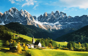 【今日行程】★上午:世外桃源,富纳斯山谷,多洛米蒂的代言人,白云石盖斯勒峰下的Santa Magdalena小镇,被一片风景秀美的牧场包围的圣乔凡尼小教堂,在小镇及周边漫步,便会陶醉于中。